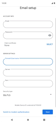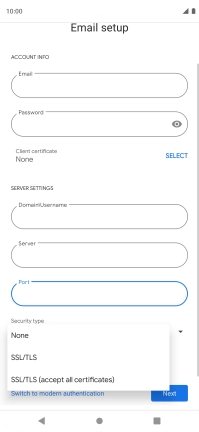 Press Password and key in the password for your email account.
