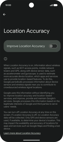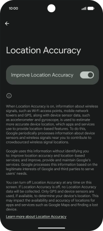 If you press the indicator next to "Improve Location Accuracy" to turn off the function, your phone can find your exact position using the GPS satellites but it may take longer as there is no access to supplementary information from the mobile network or nearby Wi-Fi networks.