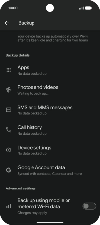 Press the indicator next to "Back up using mobile or metered Wi-Fi data" to turn the function on or off.