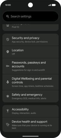 Press the required category below "General" and follow the instructions on the screen to select the required settings.