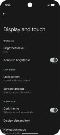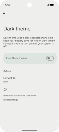 Press the required setting and follow the instructions on the screen to select the required dark mode period.