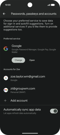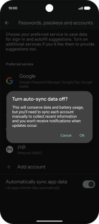 Press the indicator next to "Automatically sync app data" to turn the function on or off.