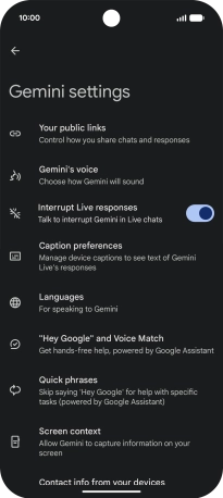 Press Google Assistant features in Gemini and follow the instructions on the screen to turn use of Google Assistant functions on or off.