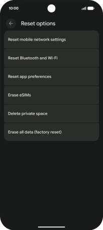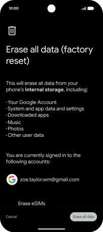 Press Erase all data. Wait a moment while the factory default settings are restored. Follow the instructions on the screen to set up your phone and prepare it for use.