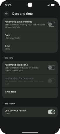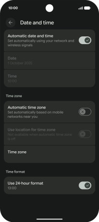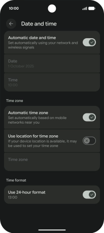 Press the indicator next to "Automatic date and time" to turn on the function.