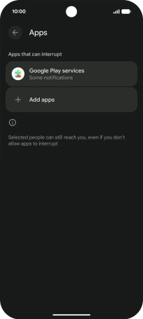 Press Add apps and follow the instructions on the screen to select which apps you would like to receive notifications from when Do Not Disturb is turned on.