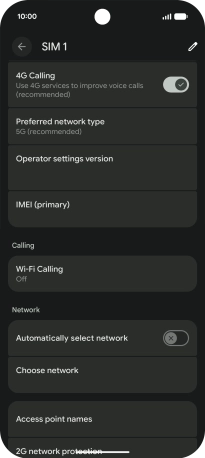 Press the indicator next to "Automatically select network" to turn on the function.