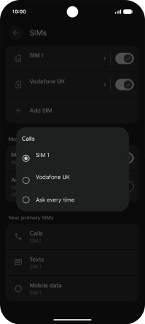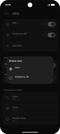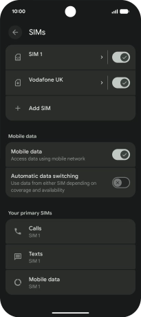 Press the indicator next to "Use this SIM" to turn use of the SIM on or off.