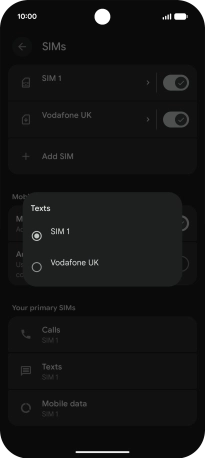 Press the indicator next to "Use this SIM" to turn use of the SIM on or off.