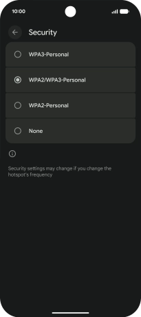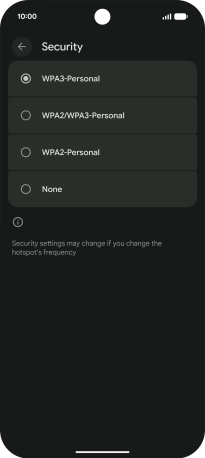 Press WPA3-Personal to password protect your Wi-Fi hotspot.