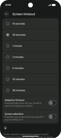 Press Screen timeout.