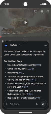 Using Gemini, you can ask questions about the content of a YouTube video.