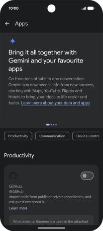 If you turn on extensions, Gemini can interact with other apps and services to give you answers to your questions and respond to your commands for the selected app or service.