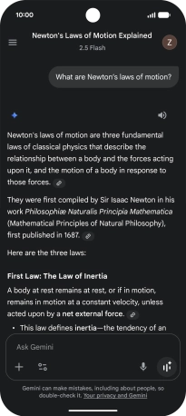 The answer from Gemini to your question is displayed.