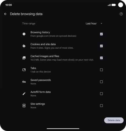 Press Delete browsing data.