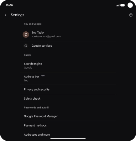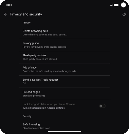 Press Privacy and security.