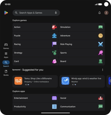 Key in the name or subject of the required app and press the search icon.