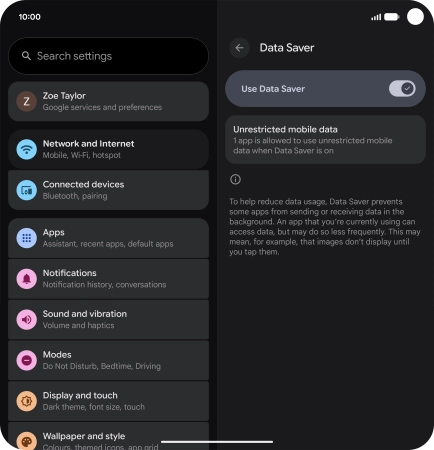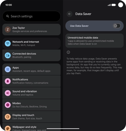 Press the indicator next to "Use Data Saver" to turn the function on or off.