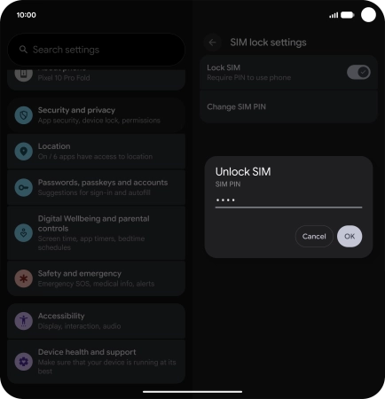 2. Turn use of PIN on or off