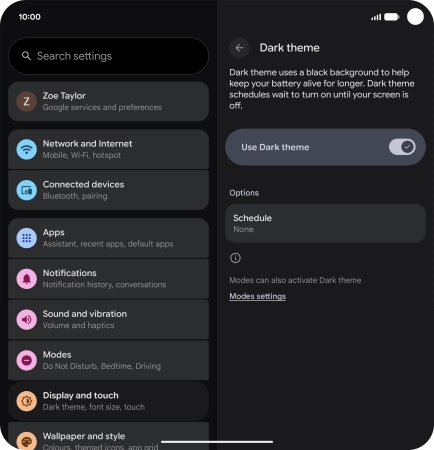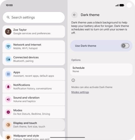 2. Turn automatic dark mode activation on or off