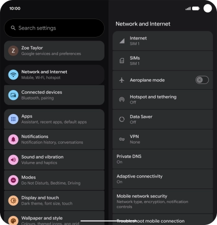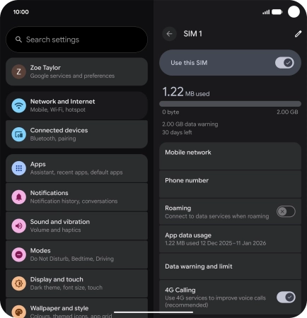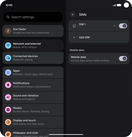 Press the name of the SIM.
