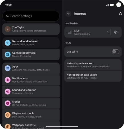 Press the indicator next to "Use Wi-Fi" to turn on the function.