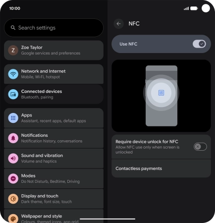 Press the indicator next to "Use NFC" to turn the function on or off.