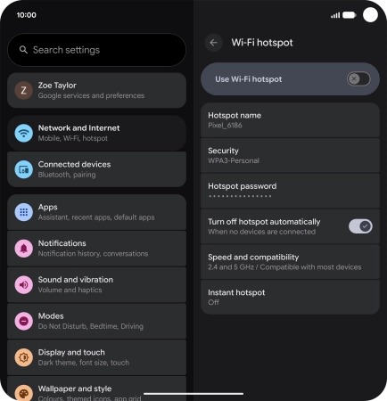 Press WPA3-Personal to password protect your Wi-Fi hotspot.