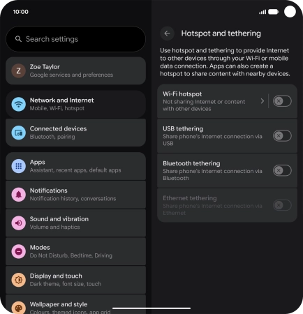 Press the indicator next to "Use Wi-Fi hotspot" to turn on the function.
