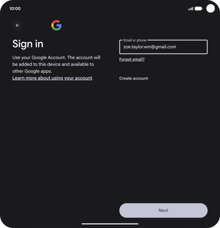 If you don't have a Google account, press Create account and follow the instructions on the screen to create an account.