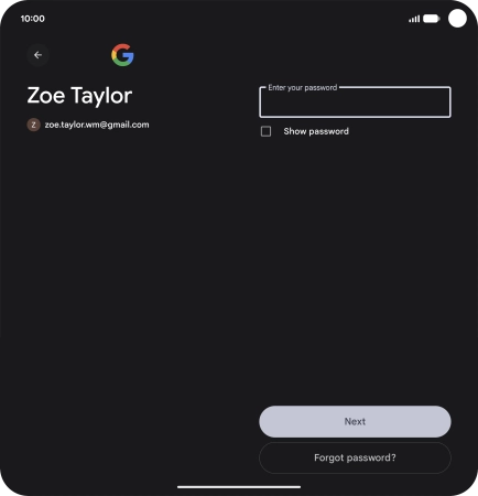 Press the field below "Enter your password" and key in the password for your Google account.