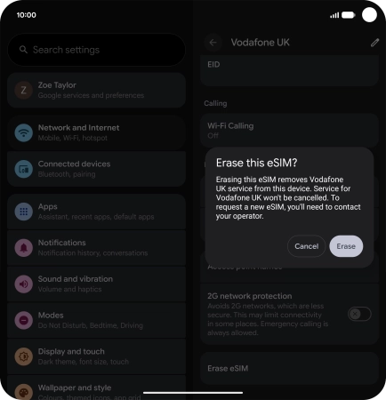 Press Erase and follow the instructions on the screen to delete your eSIM.