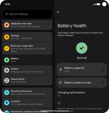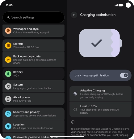 2. Turn optimised battery charging on or off