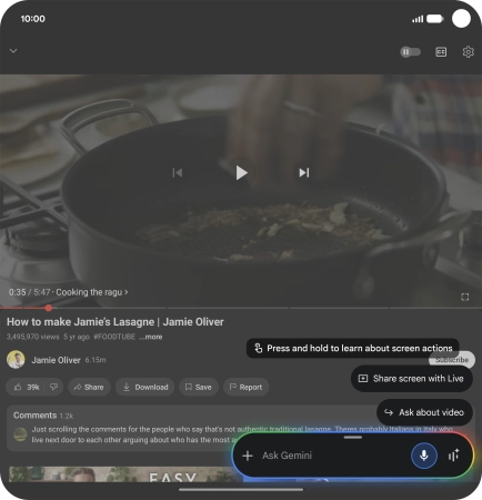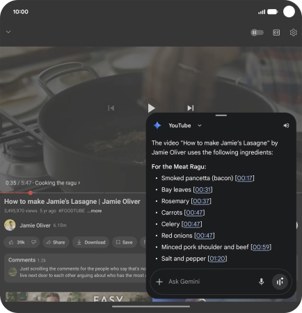 Using Gemini, you can ask questions about the content of a YouTube video.