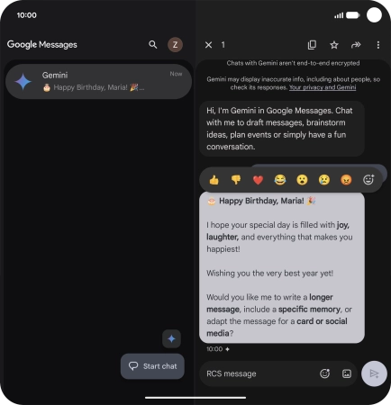 Press and hold the text suggestion from Gemini. Follow the instructions on the screen to use the text suggestion.