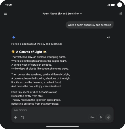 You can use Gemini to generate text, create various creative content and answer your questions in an informative way. Here you can see some examples of Gemini usage. To use most of the Gemini functions, you need to activate your Google account on your phone and set up your phone for internet.