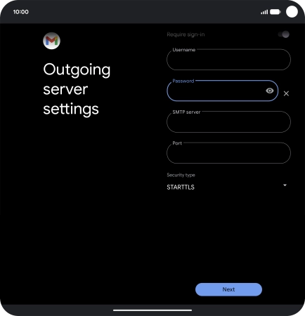 Press the field below "Password" and key in the password for your email provider's outgoing server.