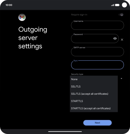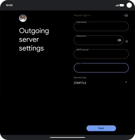 Press the field below "Username" and key in the username for your email the email provider's outgoing server.