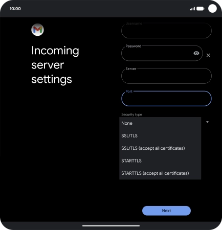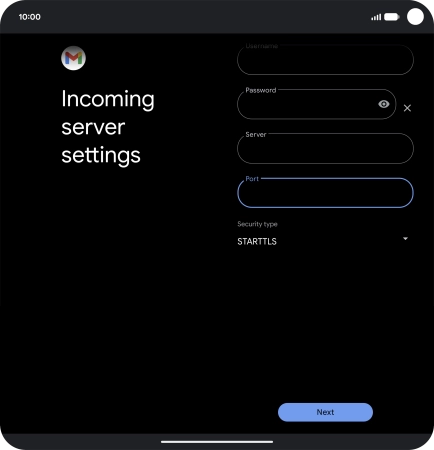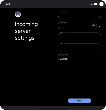 Press the field below "Server" and key in the name of your email provider's incoming server.