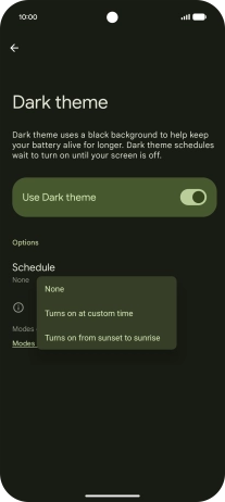 Press the required setting and follow the instructions on the screen to select the required dark mode period.
