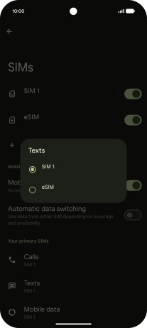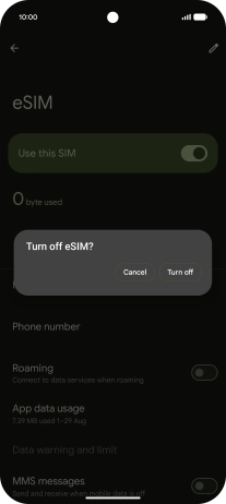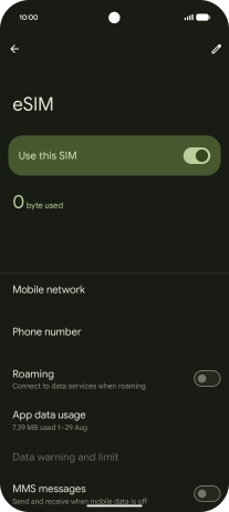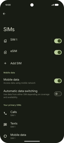 Press the indicator next to "Use this SIM" to turn use of the SIM on or off.