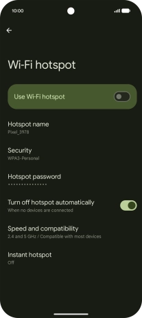 Press the indicator next to "Use Wi-Fi hotspot" to turn on the function.