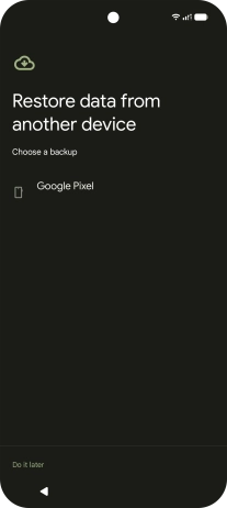 When this screen is displayed, your phone is ready to restore content from a Google One backup.