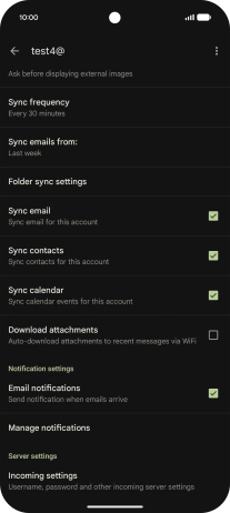 9. Turn on email message synchronisation