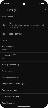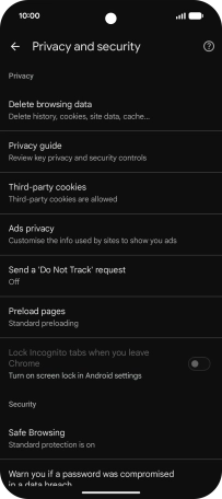 Press Privacy and security.