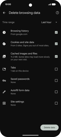 Press Delete browsing data.