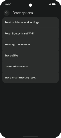 Press Erase all data (factory reset).