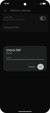Press the indicator next to "Lock SIM" to turn the function on or off.