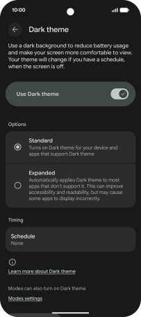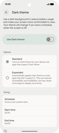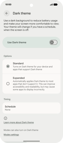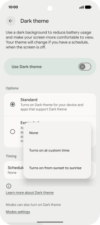 Press the required setting and follow the instructions on the screen to select the required dark mode period.