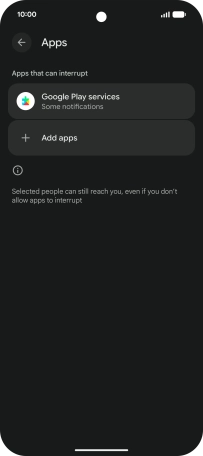 Press Add apps and follow the instructions on the screen to select which apps you would like to receive notifications from when Do Not Disturb is turned on.